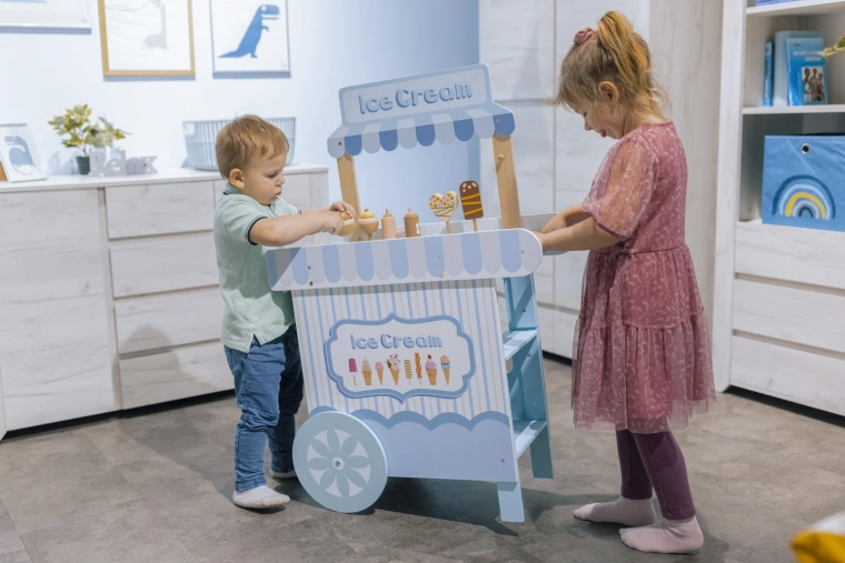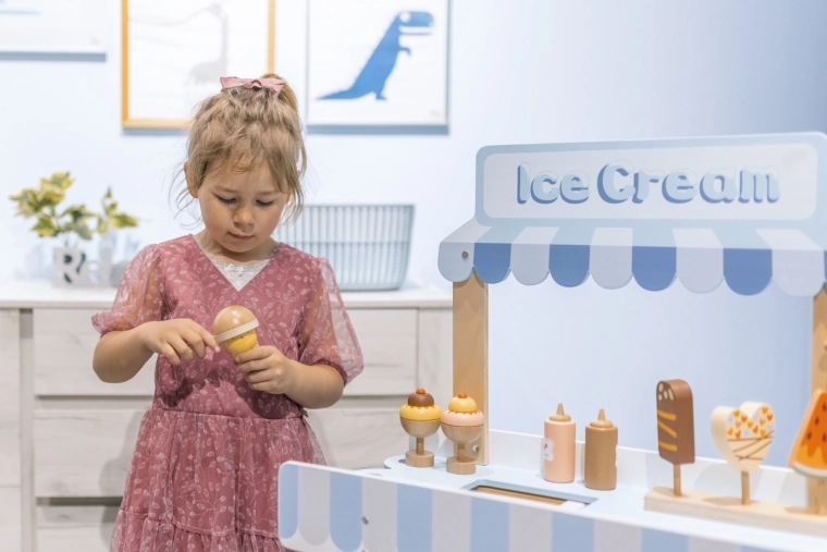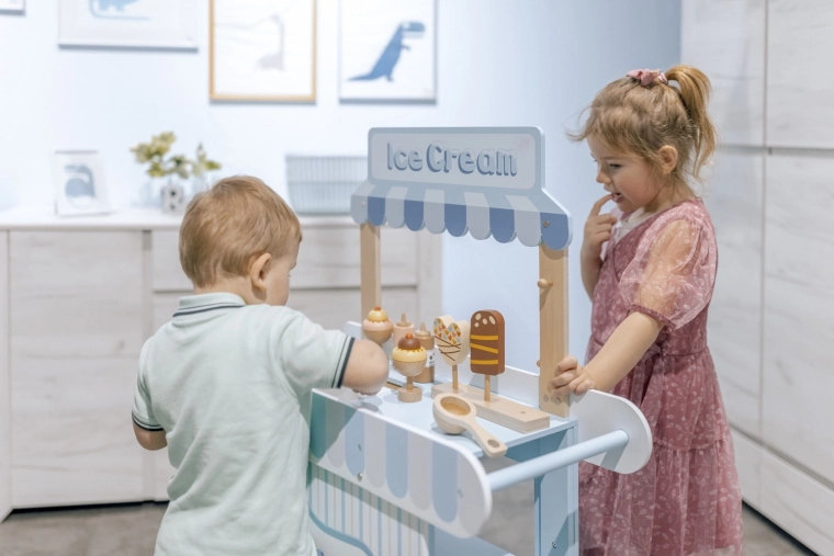 Kinder können mit realistischen Requisiten authentisch die Arbeit eines Eismachers nachahmen.