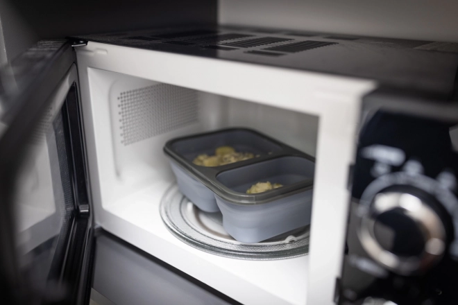Die Box ist in 2 separate Fächer unterteilt, wodurch sich die einzelnen Speisen nicht vermischen.