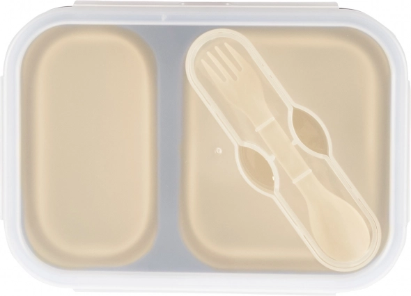 Diese Brotdose besteht aus sicherem, lebensmittelechtem Silikon, das ungiftig und bruchsicher ist. Ein großer Vorteil ist das einfache Zusammenfalten, nachdem der Inhalt verzehrt wurde – so reduziert sie ihr Volumen um bis zu 60 % und wird zum idealen, kompakten Begleiter für Ausflüge. Der Deckel schließt sehr gut ab und hat ein integriertes Fach für Besteck; Löffel und Gabel sind in einem praktischen Etui enthalten.