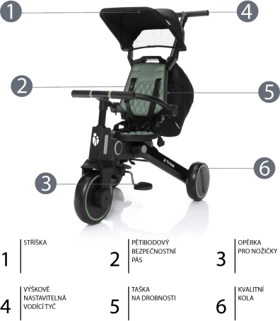 Das Modell X Trike überzeugt durch schnelles Zusammenklappen auf ein kompaktes Maß und passt so in den Kofferraum oder eine kleine Diele. Mit der umfangreichen Ausstattung inklusive Sonnendach, Trittpedalen, Hinterradbremse und praktischer Tasche ist es bereit für den Alltag und längere Spaziergänge.