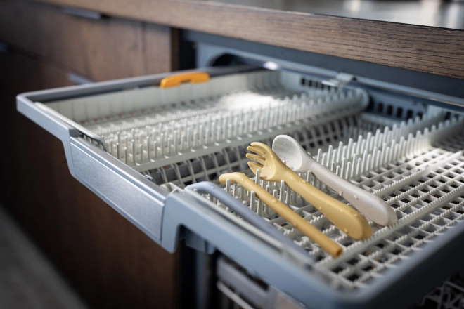 Die erhöhten Ränder der Schüssel sind eine großartige Hilfe auch für Kinder, die lernen, selbstständig zu essen. Das Essen, das das Kind auf den Löffel nimmt, kippt dank der erhöhten und geformten Ränder nicht vom Löffel. Ideal für Suppe, Nudeln, Joghurt, Brei, Obst und weitere Speisen, geeignet bereits ab den ersten Beikostmahlzeiten. Der geteilte Teller enthält 3 Fächer für verschiedene Lebensmittel. Das Lätzchen lässt sich auf 6 Größen einstellen, passt sich so dem Hals des Kindes an und sorgt für maximalen Komfort beim Essen. Ein großer Vorteil des Silikonmaterials ist die Beständigkeit gegen Gerüche und Verfärbungen. Sollte das Essen so lange in der Schüssel bleiben, dass es schwer zu reinigen ist, reicht es, die Schüssel in heißem Wasser auszukochen – auf diese Weise kann das Geschirr auch sterilisiert werden.