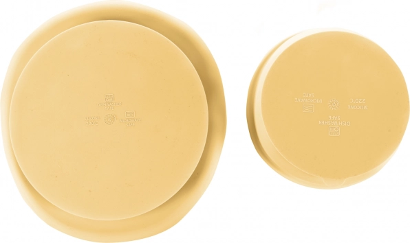 Das Geschirr besteht aus sicherem, lebensmittelechtem Silikon, das ungiftig und bruchsicher ist. Für kleine Kinder ist Silikon natürlicher als Kunststoff oder Metall. Kinder entdecken die Welt oft mit dem Mund – beim Spielen mit dem Geschirr und beim Daraufbeißen besteht dank des flexiblen, weichen und dennoch sehr robusten Materials keine Verletzungsgefahr. Ein starker rutschfester Saugnapf sorgt dafür, dass Schüssel und geteilter Teller auf dem Tisch oder auf dem Tablett des Hochstuhls haften bleiben und so ein Umkippen oder Herunterfallen verhindert wird. Für verspielte Kinder wird es sehr schwierig sein, dieses Geschirr anzuheben und auf den Boden zu werfen.