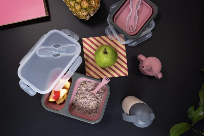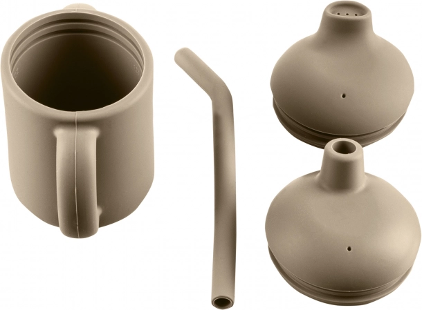 Erfrischende Limonade trinkt man am besten aus einem Becher mit Strohhalm, warmer Tee aus der Kinderflasche und Kakao aus dem Becher. Der 2-in-1-Silikonbecher ist die ideale Wahl in der Phase, in der das Kind selbstständig trinken lernt, da es zwei Deckel zur Auswahl hat – einen Trinkaufsatz, der verhindert, dass sich das Kind verschüttet, und einen klassischen Deckel mit Öffnung für den Strohhalm. Dank dieses Silikonbechers kann Ihr kleiner Schatz sein Lieblingsgetränk so genießen, wie er es mag. Die Henkel an beiden Seiten des Bechers sorgen dafür, dass er bequem und leicht zu halten ist. Durch das Schraubgewinde am Deckel ist der Becher sehr auslaufsicher und eignet sich daher gut für unterwegs, damit keine Flüssigkeit leicht ausläuft.