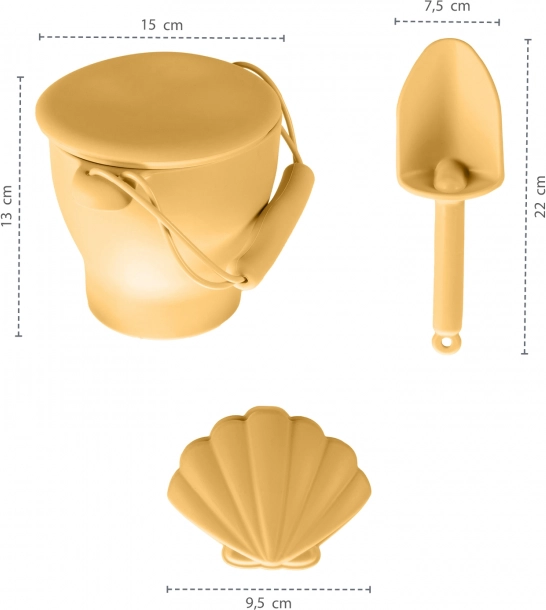 Silikonförmchen im Set mit Schaufel und Eimer sind ein sicheres Vergnügen. Lebensmittelechtes Silikon ist ungiftig und bruchsicher. Für kleine Kinder wirkt Silikon natürlicher als Kunststoff oder Metall. Neben dem Spielspaß im Sand werden dabei auch die Feinmotorik des Kindes und die Hand-Auge-Koordination gefördert. Enthält 8 Teile in schönem, minimalistischem Design.