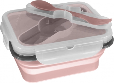 Kleiner Silikon-Snackbox mit Besteck, Altrosa