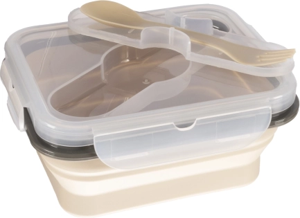 Kleiner Silikon-Snackbox mit Besteck, Sand Beige