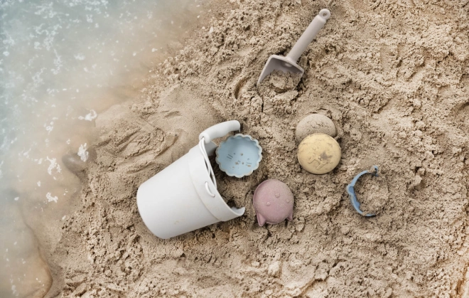 Silikonförmchen im Set mit Schaufel und Eimer sorgen für sicheres Spielvergnügen. Lebensmittelechtes Silikon ist ungiftig und bruchsicher. Für kleine Kinder wirkt Silikon natürlicher als Plastik oder Metall. Neben dem Spielspaß im Sand werden auch die Feinmotorik des Kindes und die Hand-Auge-Koordination gefördert. Enthält 8 Teile in schönem, minimalistischen Design.