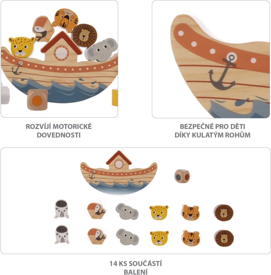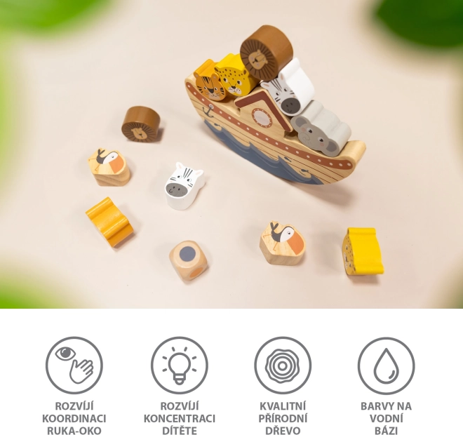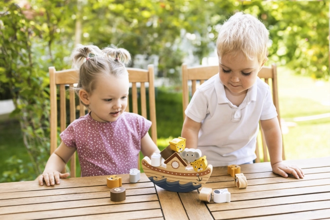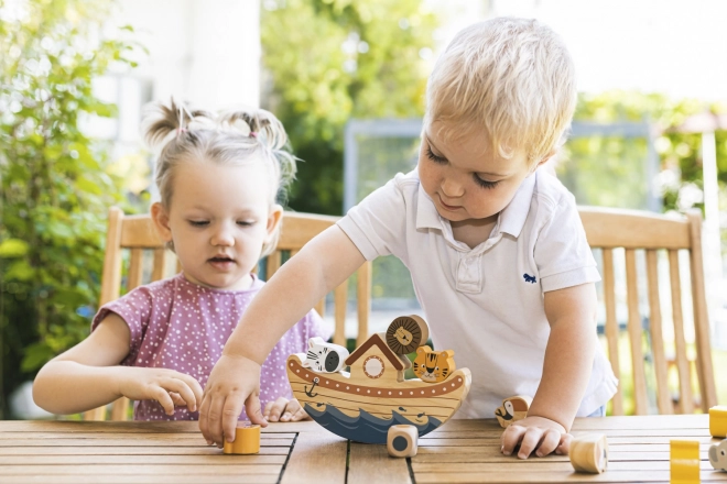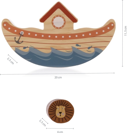 Spielt allein oder mit mehreren, Kinder, Erwachsene, Omas, Opas – dieses lustige Spiel macht allen Spaß! Ladet nach und nach alle Holztierchen an Bord, aber Vorsicht! Je mehr Tiere sich an Bord befinden, desto größer ist die Gefahr, dass die Arche kippt oder die Tiere vom Schiff fallen!