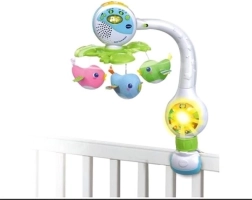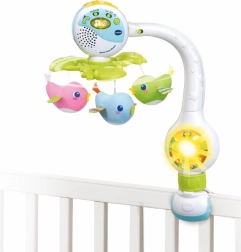 Das VTech singende Mobile 3-in-1 ist ein vielseitiger Helfer für ruhiges Einschlafen und Unterhaltung unterwegs. Bunte Vögelchen drehen sich sanft und schaffen zusammen mit Musik und Licht eine beruhigende Atmosphäre. Das Mobile bietet tschechische und slowakische Melodien und Schlaflieder, die dem Baby helfen, schneller einzuschlafen und sich geborgen zu fühlen.