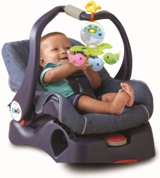 Lässt sich leicht am Kinderbett, Kinderwagen und Autositz befestigen. Schnellverschluss und Clip für den Griff sorgen für sicheren, schnellen Halt.