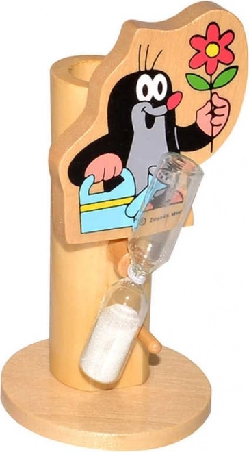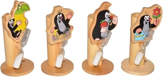 Holz Zahnbürstenhalter mit dem beliebten Motiv von Maulwurf und seinen Freunden, das Kindern das Zähneputzen mit Sanduhr verschönert.