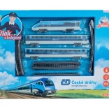 Entdecken Sie den Spaß auf den Schienen mit dem realistischen Zugset, inspiriert von den ČESKÉ DRÁHY – das Set bietet eine Lokomotive mit Sound und Licht, zwei Waggons und ein Gleissystem mit 4,8 m Länge. Dank der Stromversorgung mit 2× AA-Batterien fährt die Lok, leuchtet und erzeugt authentische Geräusche. Das Set lässt sich mit dem REGIOJET-Zug kombinieren und um zusätzliche Gleise und Weichen erweitern.