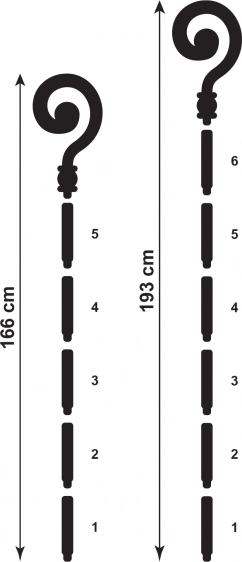 Der Nikolausstab kann angepasst werden, indem ein Segment entfernt wird, wodurch eine kürzere Variante mit einer Länge von 166 cm entsteht. Die elegante goldene Oberfläche verleiht einen Hauch von Luxus und Stil, was ihn zur idealen Wahl für festliche Anlässe macht.