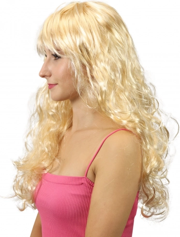 Suchen Sie eine einfache Möglichkeit, Ihr Outfit aufzufrischen? Diese stylische blonde Perücke mit langen Wellen und weichem Pony betont sofort Ihren Look und schenkt Selbstvertrauen. Dank hochwertiger synthetischer Fasern wirkt sie voll und gepflegt, behält dabei angenehmen Glanz und natürliche Bewegung.