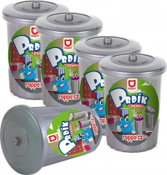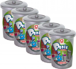 • Praktischer Becher in Mülleimerform – sichere und saubere Aufbewahrung.