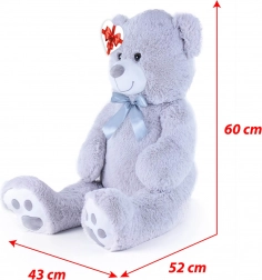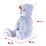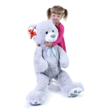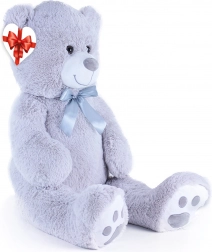 Der große graue Plüschbär mit einer Länge von ca. 100 cm begeistert durch seine Weichheit, Kuscheligkeit und hochwertige Verarbeitung. Die samtige Oberfläche lädt zum Schmusen ein, die satinierte Schleife verleiht einen eleganten Look und der Herzanhänger ermöglicht eine persönliche Botschaft – ideal für Geburtstage, Feiertage oder als Deko im Kinderzimmer.