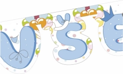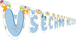 Super Tipp für die Party - Girlande Alles Gute in elegantem Blau! Einfach ausrollen und an einem beliebigen Ort aufhängen.
