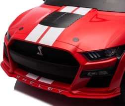 Ein kleiner Sportwagen für große Abenteuer. Das elektrische Kinderauto FORD Mustang GT500 Shelby überzeugt mit präziser Karosserieausführung, markanter Front und Heckspoiler. Dank des übersichtlichen Cockpits mit FAST/SLOW-Schalter lernen Kinder schnell, das Auto sicher zu steuern.
