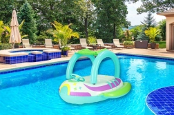 Das praktische Dach schützt vor der Sonne und ermöglicht längeres, sichereres Spielen im Wasser ohne Überhitzung.