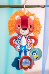 Unterhaltsames Textilspielzeug für die Kleinsten ab 3 Monaten, das verschiedene Geräusche, Farben und Texturen zum Entdecken bietet. Der Löwe Jack mit seiner wilden Mähne kommt mit seinem Freund, dem Tukan Pablo; außerdem sind ein Spiegel und ein Beißring enthalten.