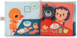 Klare Farben, lustige Tierillustrationen und taktile Details unterstützen die sensorische Entwicklung sowie die Hand-Auge-Koordination. Ein praktisches Fotofenster ermöglicht die Personalisierung, sodass das Kind Teil der Geschichte wird. Das Material ist angenehm anzufassen, sicher und leicht zu pflegen.
