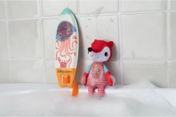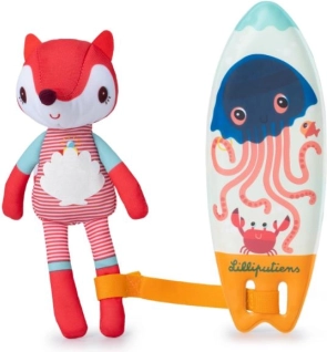 Auf die Wellen mit Füchsin Alice! Dieses bezaubernde Wasserspielzeug bringt Kindern den Zauber der Verwandlung näher: Beim Kontakt mit Wasser erscheinen auf dem Neoprenanzug und dem Surfbrett verborgene Muster. Ideal für das tägliche Baden – es regt Neugier, Feinmotorik und Fantasie an.