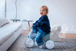 Das MoMi TOBIS Rutschfahrzeug ist die erste Fahrt Ihres Kindes! Es unterstützt eine gesunde Entwicklung und sorgt für Spaß – es schult das Gleichgewicht und fördert die Motorik. Außerdem bietet es tolle Extras: eine Hupe, ein Farbwechsel-Frontlicht und etwas, das Kinder lieben – Seifenblasen!