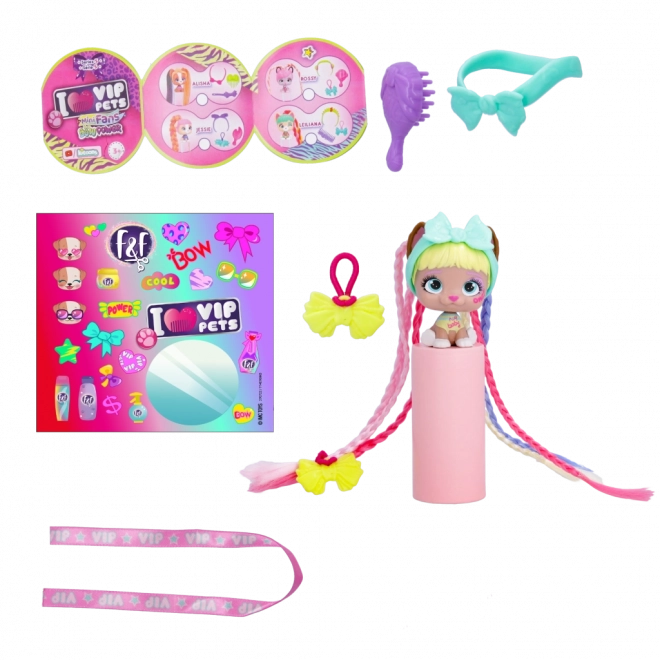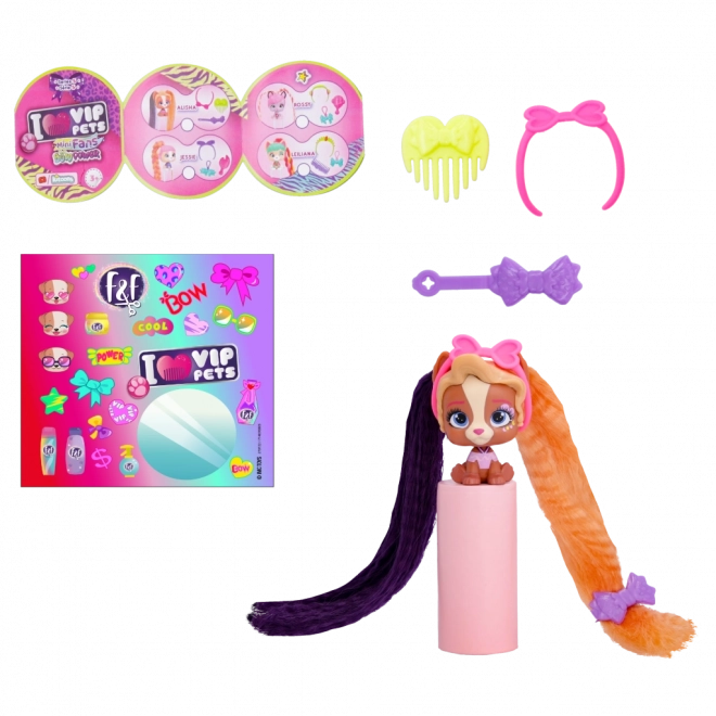 Genieße den Spaß mit den VIP Pets Mini Fans Bow Power! Diese tolle Kollektion umfasst 9 Mini-Welpen, die den neuesten Trends mit superlangem Haar folgen. Jede Packung enthält überraschende Extras in Form verschiedener Haar-Accessoires.