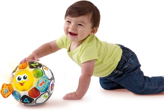 Dank seiner Fähigkeiten kann sich der Ball vor den Kindern rollen, was ihre Aufmerksamkeit erregt und sie zum Beobachten, Krabbeln und Spielen motiviert. Dieser bunte Fußball mit verschiedenen Texturen und Soundeffekten entwickelt nicht nur die Sinneswahrnehmung, sondern bietet auch taktile Stimulation durch den weichen Plüschbezug. Licht- und Soundeffekte ergänzt durch das leuchtende Gesicht und orangefarbene Tasten tragen zur Farberkenntnis bei.