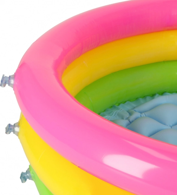 Machen Sie Ihren Kindern eine Freude mit einem Planschbecken, das wie geschaffen für heiße Tage ist. Kompakte Maße von 61 × 22 cm, drei separat aufblasbare Ringe in Regenbogenfarben und ein aufblasbarer Boden für mehr Komfort machen dieses Modell zur idealen Wahl für die Kleinsten.
