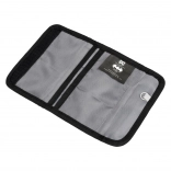 Funktionalität und Praktikabilität: Die Geldbörse ist mit einem Klettverschluss und einem Reißverschlussfach für Kleingeld ausgestattet. Durch das lange Band kann sie leicht um den Hals getragen werden.