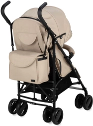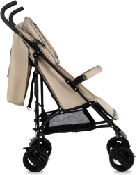 Der Buggy ist mit wendigen EVA-Schaumrädern ausgestattet, die pannensicher sind, mit arretierbaren Vorderrädern und reflektierenden Elementen für bessere Sichtbarkeit. Verstellbare Rückenlehne und Fußstütze sorgen für Komfort von 6 Monaten bis 15 kg. Die praktische Möglichkeit, den Frontbügel einseitig zu öffnen, erleichtert das Hineinsetzen des Kindes.