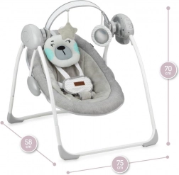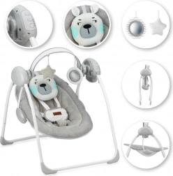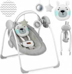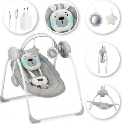 Die Tragfähigkeit des Sitzes ist von der Geburt bis 9 kg geeignet. Der Sitz lässt sich in 3 Neigungspositionen einstellen, das Schaukeln bietet 5 verschiedene Geschwindigkeiten. Die Schaukel wird mit Batterien betrieben – diese halten bis zu 180 Stunden. Die Konstruktion ist sehr stabil, verfügt über rutschfeste Füße und der Sitz ist mit einem 5-Punkt-Gurt mit abgedeckter Schnalle ausgestattet.
