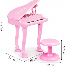 Genießen Sie unvergesslichen Spaß mit diesem rosa Klavier, das eine musikalische Atmosphäre in Ihr Zuhause bringt. Das Klavier ist so konzipiert, dass es Kindern ermöglicht, eigene Lieder zu komponieren und bietet das realistische Aussehen eines echten Instruments. Teil des Sets ist ein Hocker, der Komfort beim Spielen für Ihren kleinen Künstler bietet.