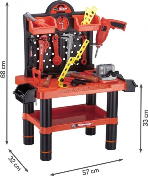 Der Kinderspieltisch Superior ist die ideale Wahl für Kinder, die gerne echte handwerkliche Tätigkeiten nachahmen. Hergestellt aus sicherem und langlebigem Kunststoff, bietet er Kinder ab 3 Jahren eine Vielzahl von Werkzeugen und Zubehörteilen für stundenlangen Spaß und Lernen.