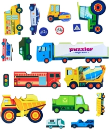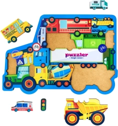 Entdecken Sie die spannende Welt der Fahrzeuge mit dem WOODLIKA Holzpuzzle. Es enthält 18 stabile Teile mit Illustrationen von Autos und Verkehrsschildern, die Feinmotorik, logisches Denken und das Kennenlernen von Verkehrsmitteln fördern. Ideales Lernspiel für kleine Entdecker und Autoliebhaber.