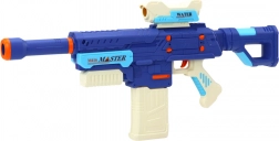Die wiederaufladbare Wasserpistole M416! Dieses futuristische Gewehr mit beeindruckendem Design in Blau- und Weißtönen mit orangefarbenen Akzenten ist der perfekte Begleiter für sommerliche Abenteuer für Kinder und Erwachsene.