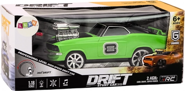 Genieße dynamisches Gleiten durch enge Kurven, schnelle Richtungswechsel und eindrucksvolle Pirouetten – dank Konstruktion für sanften Drift und stabile Lenkung. Das Auto überzeugt mit seinem auffälligen grünen Look, sportlichen Details und eindrucksvollen LED-Lichtern, die jeder Fahrt Atmosphäre verleihen.