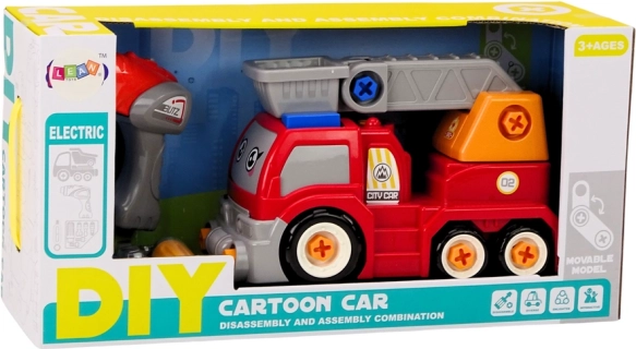 Unterhaltsames Bauset für kleine Mechaniker: ein roter Cartoon-Laster mit beweglichem Kran, den Kinder mithilfe einer elektrischen Spielzeugbohrmaschine selbst zerlegen und wieder zusammenbauen können. Fördert Feinmotorik, Kreativität und logisches Denken, bietet realistisches Bauspiel und stundenlangen Spaß.