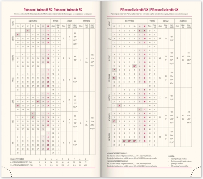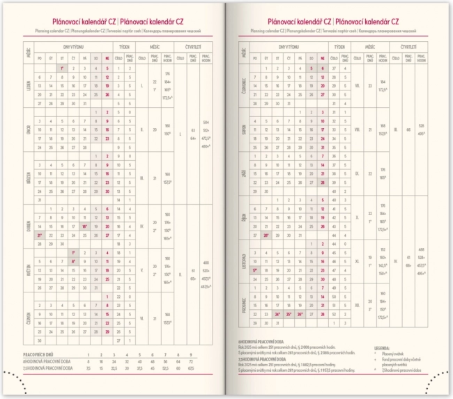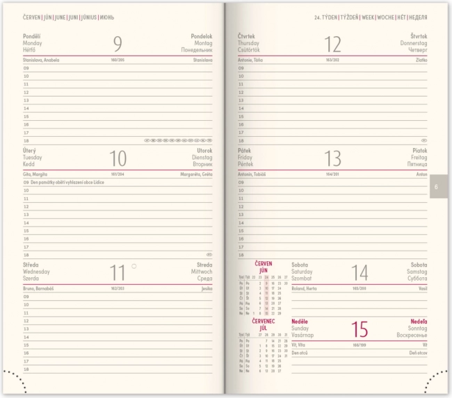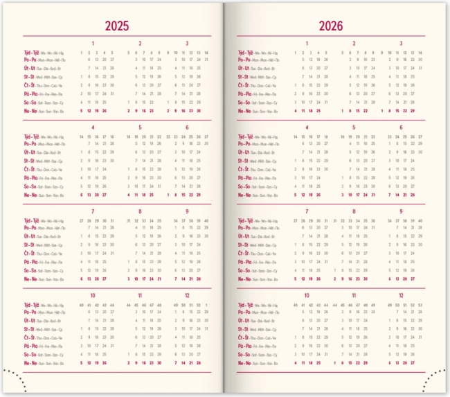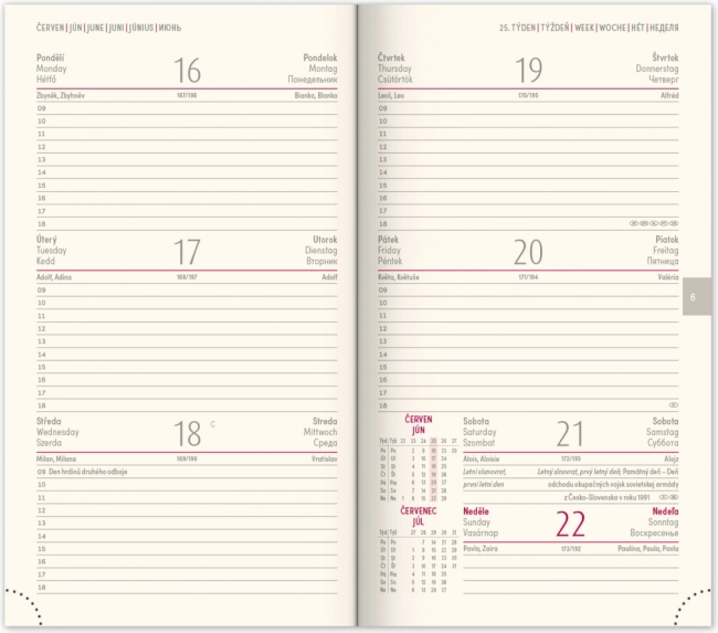 - Wochenplan mit einem Kalender in Tschechisch-Slowakisch und zusätzlichen Sprachen.