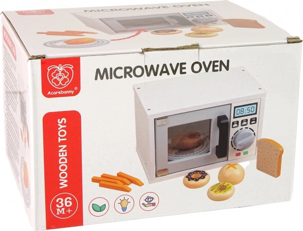 Kinder-Mikrowelle aus Holz mit Zubehör – weiß