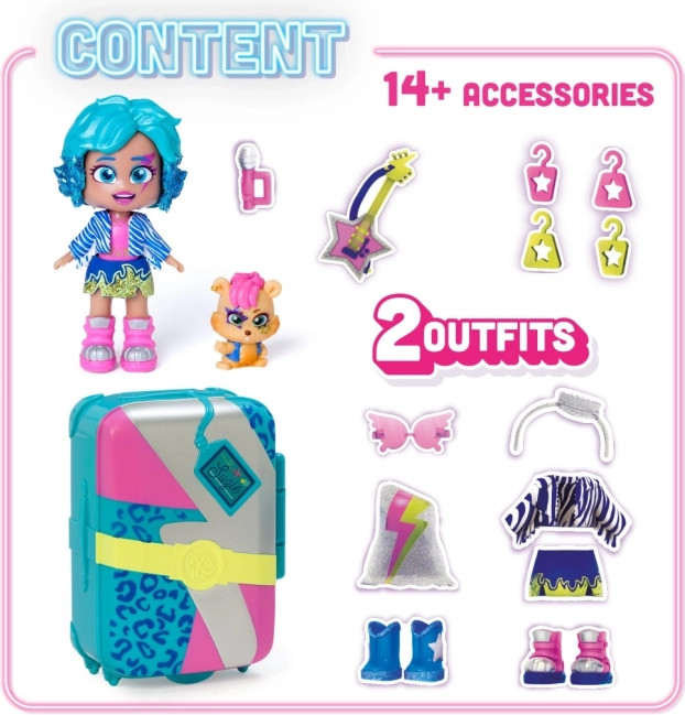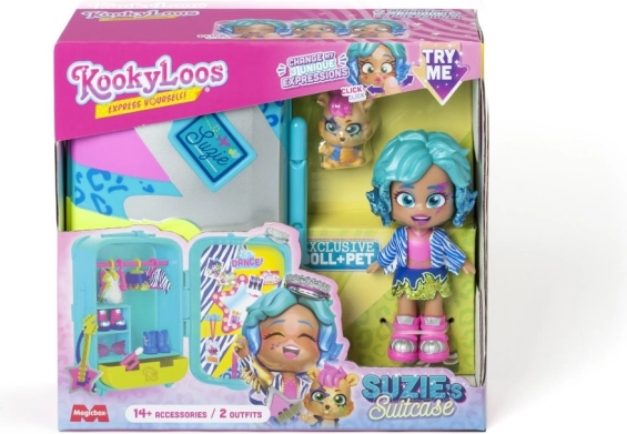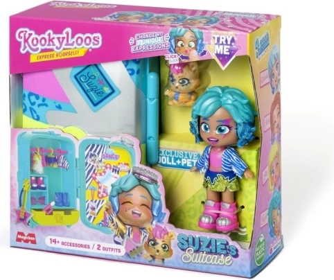 Seid ihr bereit für die Reise? Der KookyLoos-Koffer enthält alles, was ihr für jede Menge Spaß braucht. Es warten bis zu 4 Modelle zum Sammeln auf euch! Suzi ist eine echte Modekennerin. Ihr Haute-Couture-Outfit ist der neueste Pariser Modestil! Seid ihr bereit für eine Tour durch die Juweliergeschäfte am Place Vendôme und in der Rue Cambon? Aber ihr entscheidet, welches der zwei Outfits sie bei der neuesten Modenschau tragen wird! Sie hat außerdem drei verschiedene Gesichtsausdrücke, die ihr mit einem Klick wechseln könnt. Ihr könnt alles in den Koffer packen und mitnehmen! Der Koffer enthält – exklusive KookyLoos-Puppe, 2× Outfit, 1× Tierchen, über 13 Accessoires und Kleiderbügel.