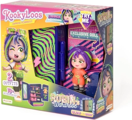 Puppe KookyLoos Robin ist die ideale Wahl für Mädchen, die Mode und kreative Spiele lieben. Dieses Spielset bietet eine Puppe mit austauschbaren Gesichtsausdrücken, stylischen Outfits und einem praktischen Kleiderschrank.