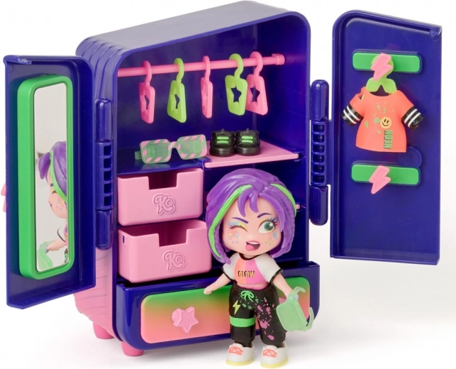 1x Puppe, 2x Outfit, Schuhe, Accessoires, Kleiderschrank, Aufkleber