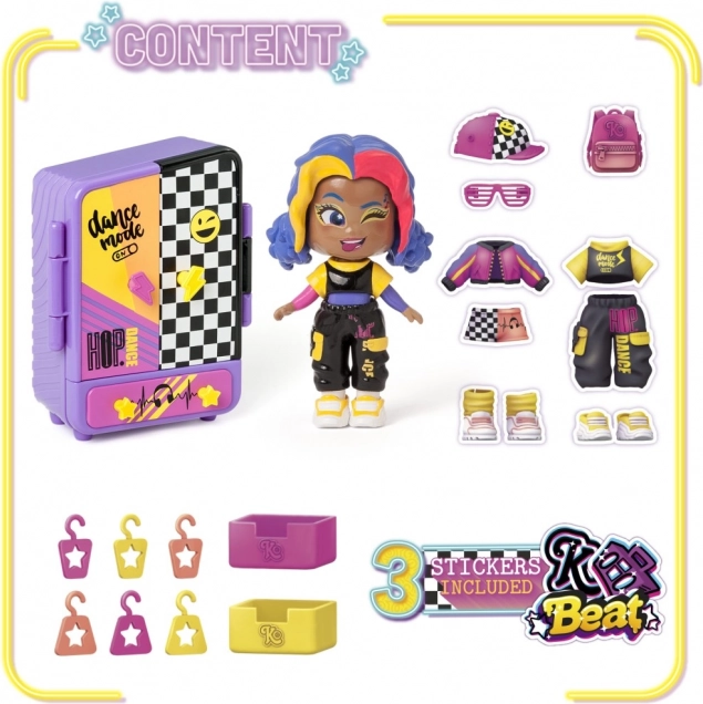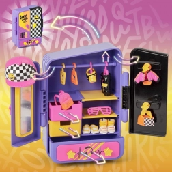 Tauchen Sie ein in die Welt der Fantasie mit dem KookyLoos Mel Spielset, das Spaß und Kreativität in jeden Spielmoment bringt. Das Set enthält die Puppe Mel, die Hip-Hop und Tan liebt. Mit ihren auffälligen Outfits können Sie Ihren eigenen Tanzwettbewerb veranstalten oder eine Modenschau nach Lust und Laune organisieren. Garderobe in eleganten violett-pinken Schattierungen ermöglicht es Ihnen, alle Accessoires übersichtlich zu verstauen. Jedes Spiel ist einzigartig dank der wechselnden Gesichtsausdrücke der Puppe durch einfaches Klicken.