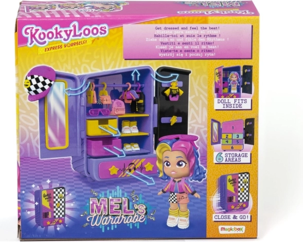 Entdecken Sie das einzigartige KookyLoos Mel Spielset, das eine Puppe mit wechselndem Gesichtsausdruck und einer bunten Garderobe voller modischer Accessoires umfasst. Dieses Set fördert kreatives Spielen und ist die ideale Wahl für alle Puppen- und Modeliebhaber.