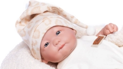 Tauchen Sie ein in die Welt der Fürsorge mit dieser realistischen Babypuppe, die sich durch einen Vollvinylkörper auszeichnet. Sie können sie sogar baden, und dank der beweglichen Gliedmaßen lässt sie sich in verschiedene Positionen setzen. Der Körper ist perfekt gestaltet und hat alle feinen Details eines Kinderkörpers eingefangen, einschließlich der kleinsten Falten und authentischen Geschlechtsmerkmale.