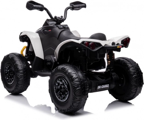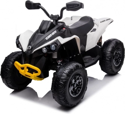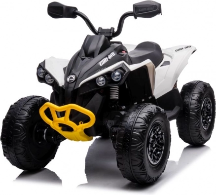 Die weiß‑schwarze Ausführung mit gelbem Frontschutz verleiht dem Quad einen attraktiven Look und das Gefühl eines echten ATV.