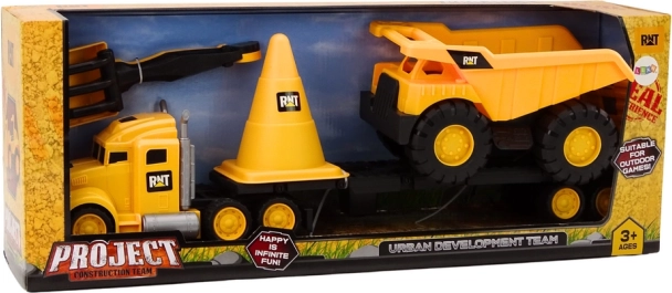 Bauset – gelber Lkw mit Anhänger und Kipper für Kinder