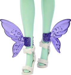 Die violetten Flügel an den Knöcheln lassen sich leicht an- und abstecken – so können Kinder Stil und Geschichte im Handumdrehen ändern.